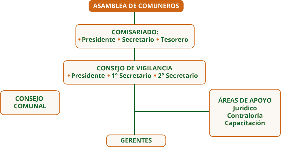 Nuestra comunidad se organiza con base en nuestros propios principios de gobernanza indígena. Elegimos en asamblea comunal a nuestras autoridades: el Presidente del Comisariado, su Secretario y Tesorero; y el Presidente del Consejo de Vigilancia, acompañado por su Primer y Segundo Secretario. Su compromiso dura tres años, tiempo en el que cuidan, administran y representan los intereses colectivos con responsabilidad y transparencia.